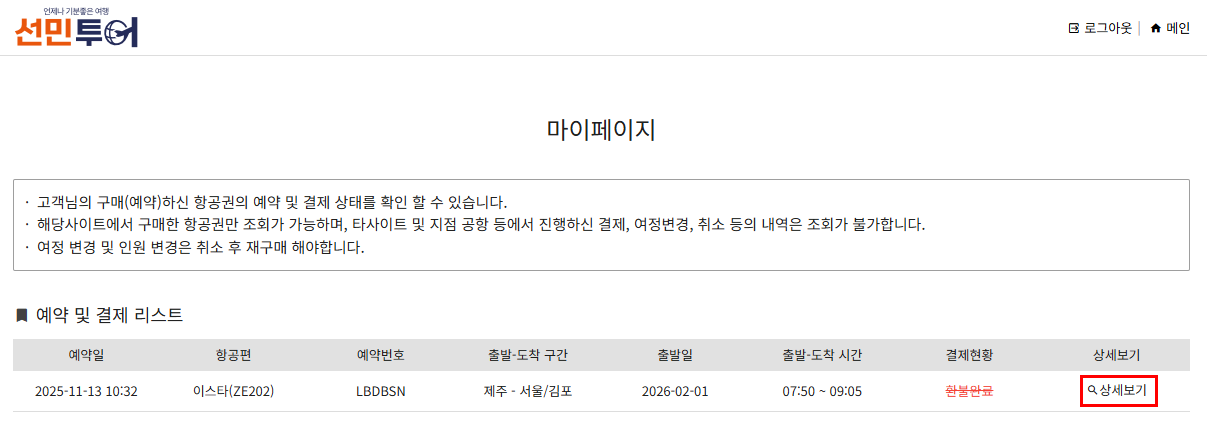 일정변경을 원하실 경우 취소 후 재구매를 해야 합니다.(항공좌석이 마감될 수 있으므로 잔여석이 있는지 미리 확인하셔야 합니다.)